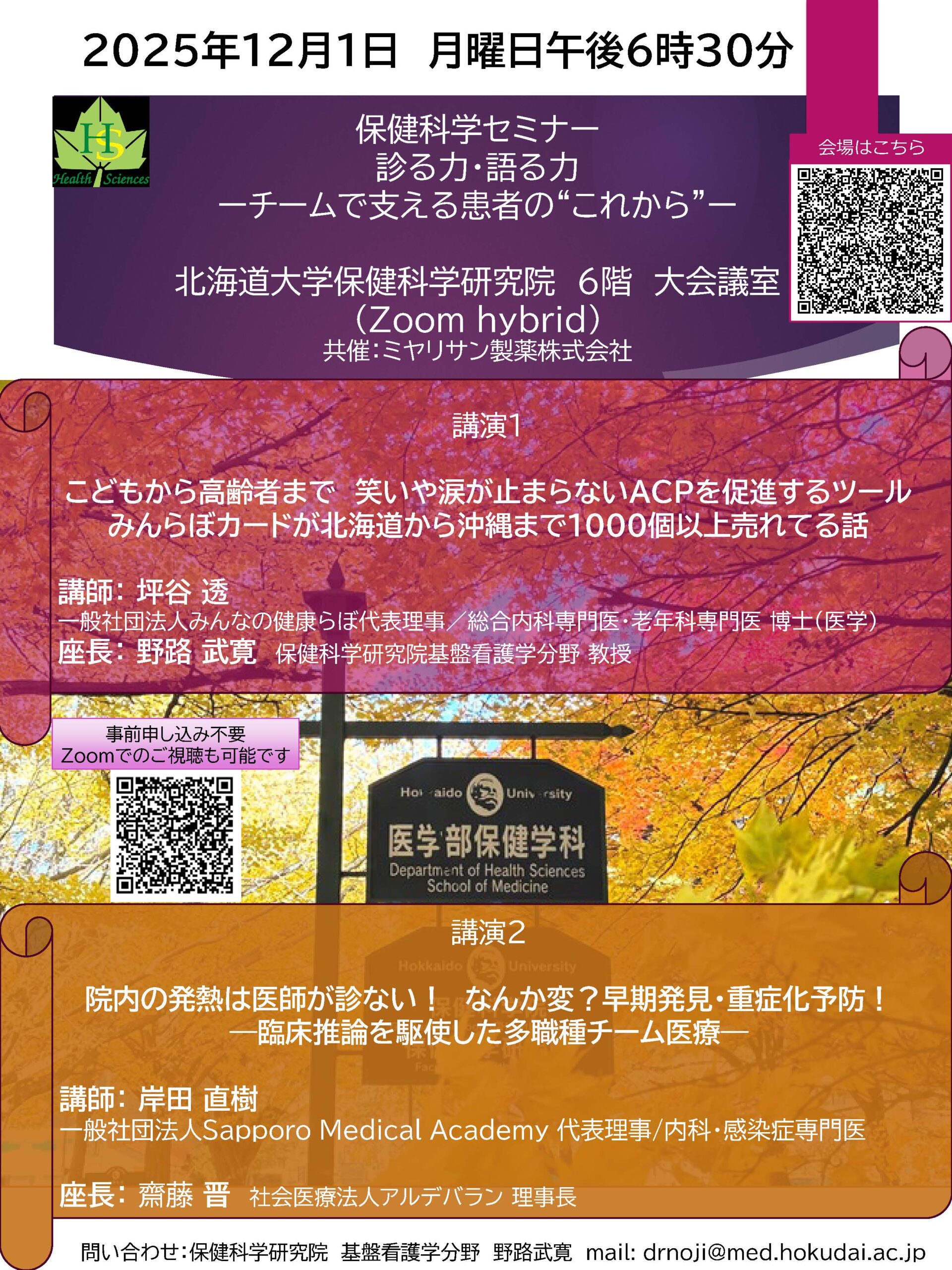 【共催】北海道大学大学院保健科学研究院 公開講座委員会