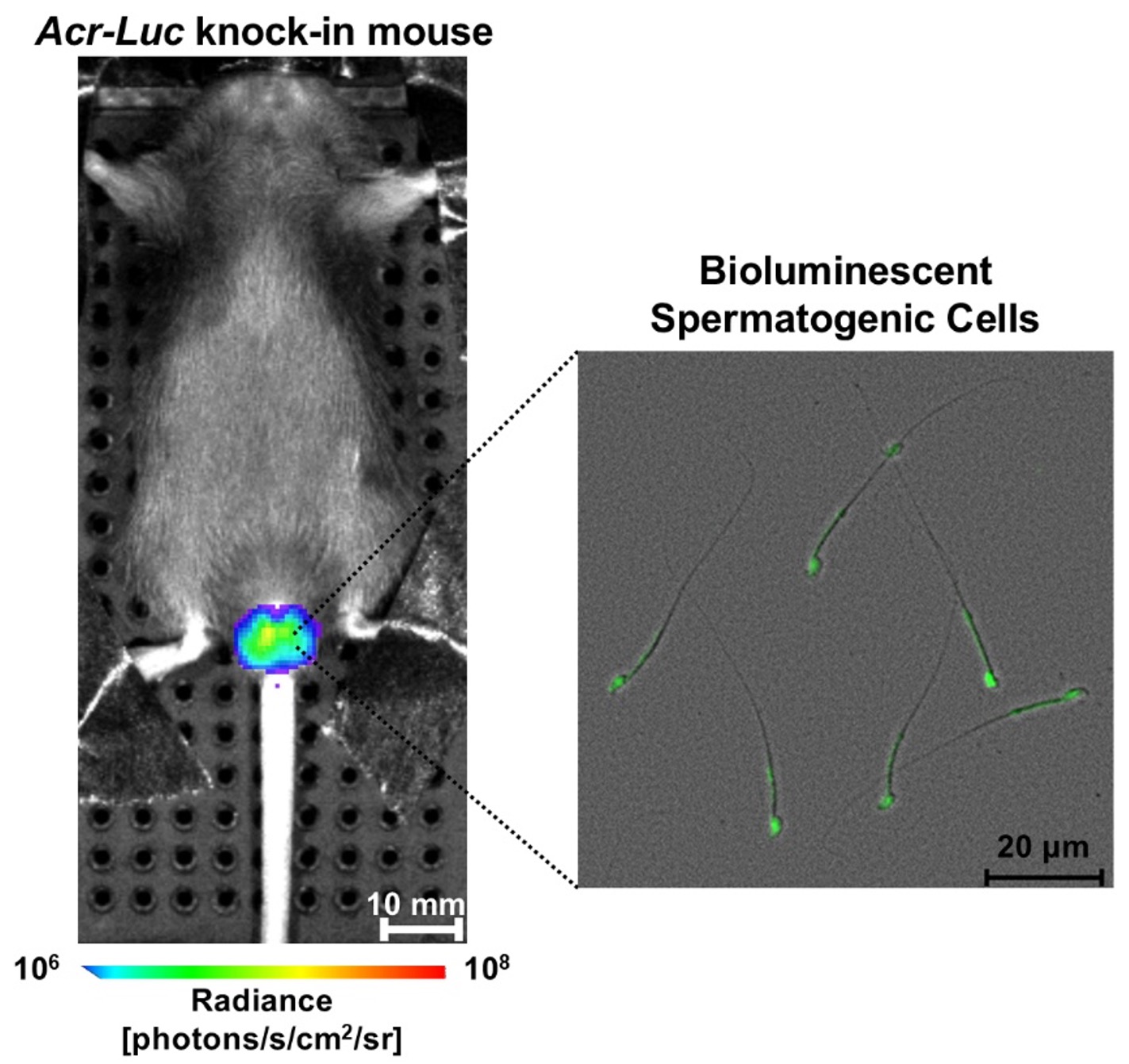 北海道大学大学院保健科学研究院の福永久典准教授(環境健康科学研究教育センター副センター長)、同大学大学院医学研究院の白土博樹教授、大阪大学微生物病研究所の宮田治彦准教授、英国クイーンズ大学ベルファストの Kevin Prise 教授らの国際共同研究グループは、雄マウスの精子形成を生体内でリアルタイム可視化できる新しい遺伝子改変動物モデル「Acr-Luc ノックイン(KI)マウス」の開発に成功しました。