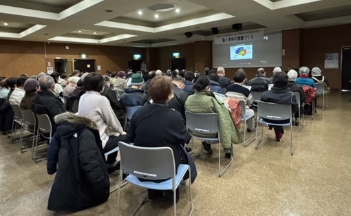 講師は,大学院保健科学研究院リハビリテーション科学分野の澤村大輔教授と笠原聡史助教が担当しました。会場では熱心にメモを取る参加者の姿が多く見られ、地域全体で健康に関する知識を広めていく取り組みの大切さが再認識できる機会となりました。